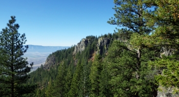 This is a very scenic ride (except for the logging carnage section), over and under the rocky cliffs of Gasset Bluff. The section shown here is mostly singletrack on the Hancock Forest Land. It is open to hiking and mountain biking for the public. Highlights include nice views of the Grande Ronde Valley and the ride by a hang glider launch ramp. There are a few short climbs but otherwise it is mostly an enduro-style downhill. The trail is in and out of dense to sparsely treed forest with some nice rock features occasionally.